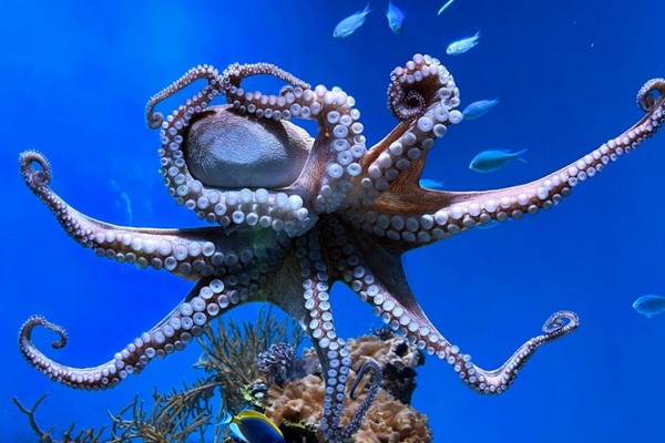 • Ускоренный цикл жизни: В теплой воде восьминоги растут быстрее, достигая веса в 3-4 кг всего за год.